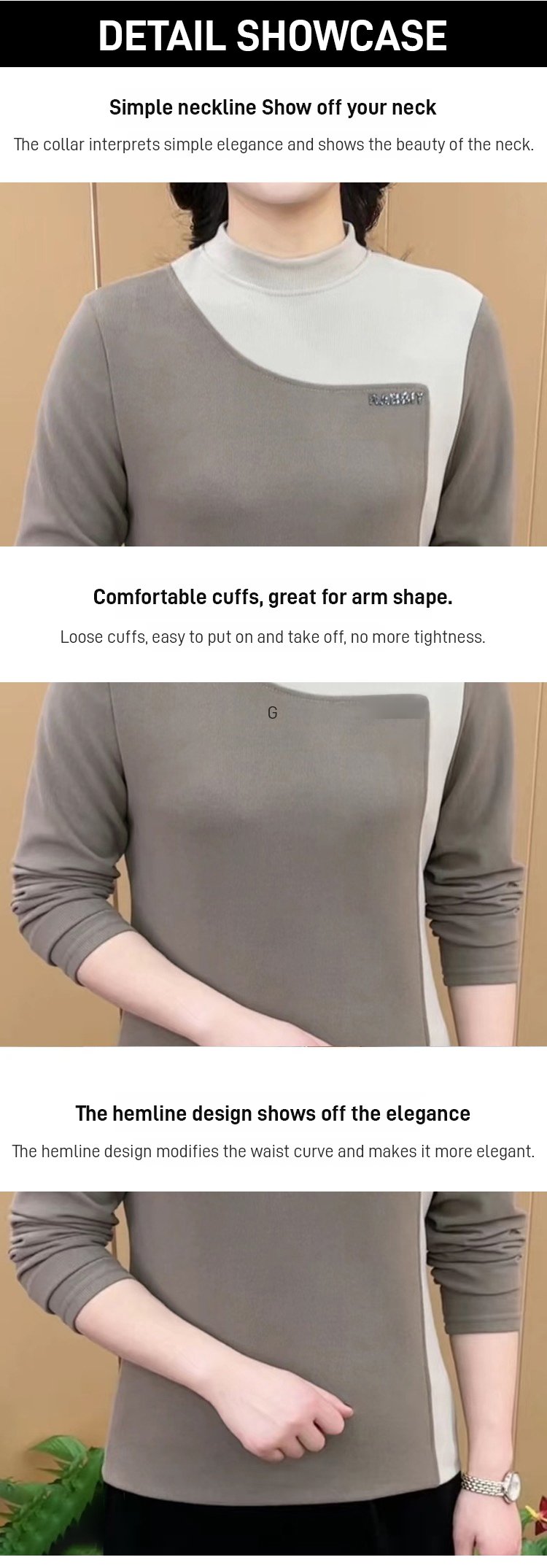 Double-faced velvet contrast color stitching bottoming shirt
